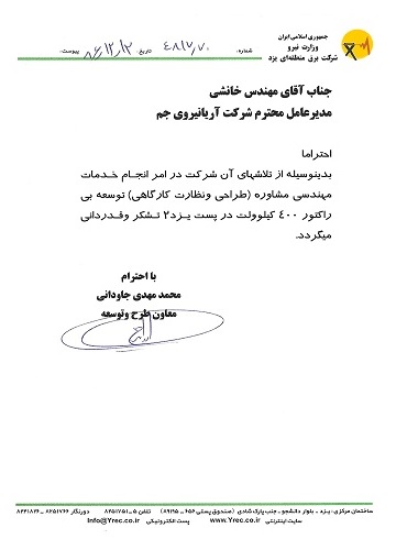 جهت ارائه خدمات مشاوره مهندسی توسعه بی راکتور 400 کیلوولت یزد 2