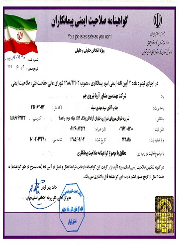 صلاحیت ایمنی پیمانکاران شرکت مهندسین مشاور آریا نیروی جم