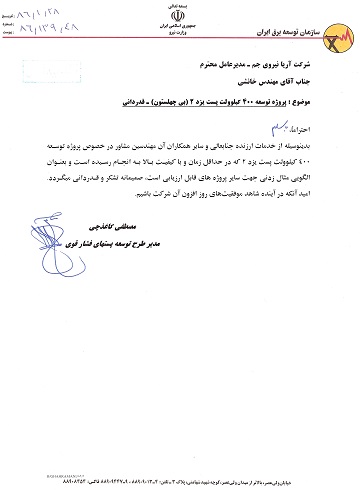 جهت ارائه خدمات مشاوره مهندسی توسعه بی راکتور 400 کیلوولت یزد 2